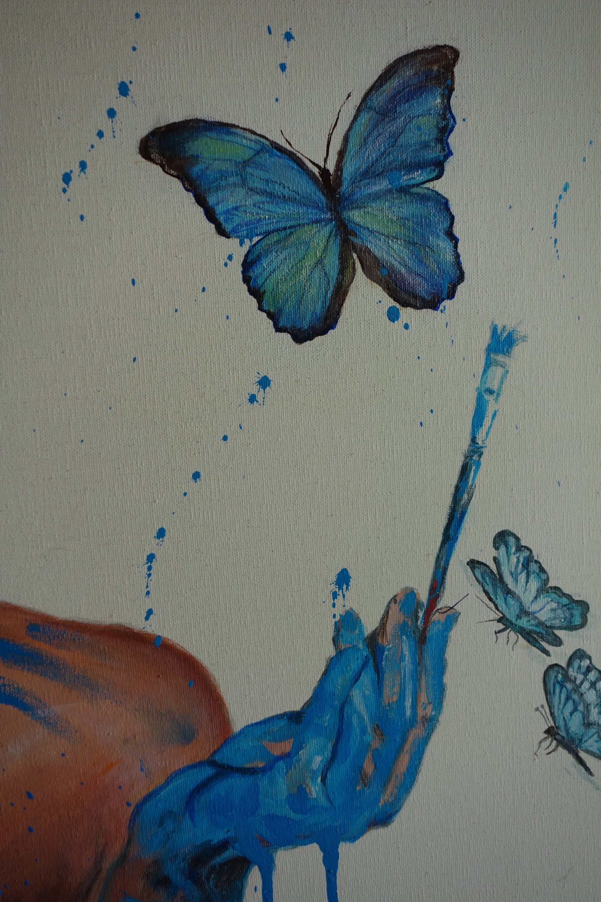 Technique acrylique et feuilles d’or sur toile. Lettres en relief sur la pièce de monnaie.