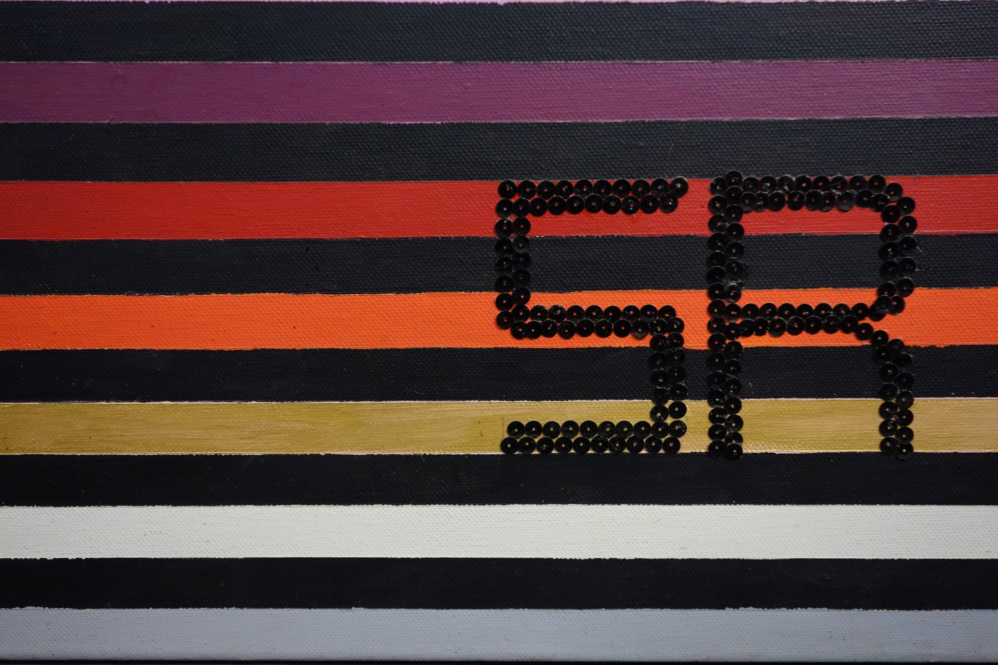 Technique acrylique, technique au couteau et collage "SR" en hommage aux lettres brodées sur les vêtement de la marque.